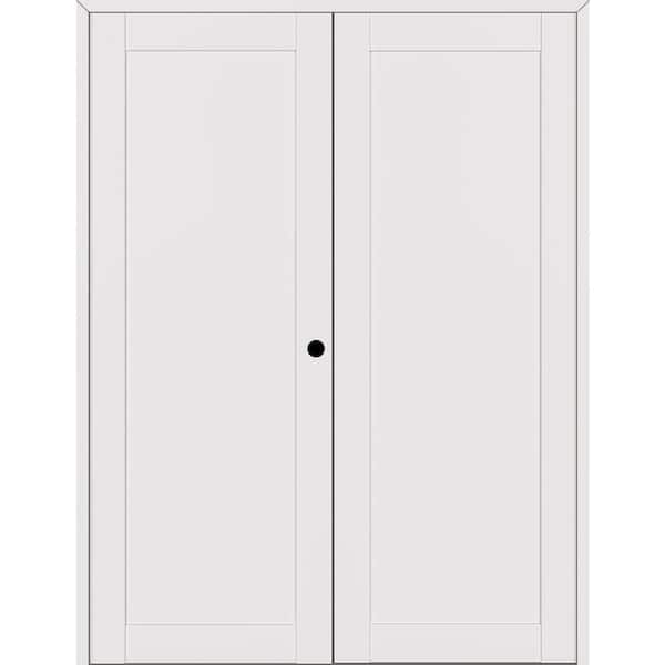 1-Panel Shaker 48 in. x 80 in. Left Active Snow White Wood Composite Double Prehung Interior Door