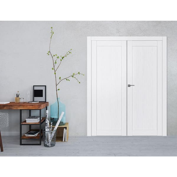 1-Panel Shaker 48 in. x 80 in. Right Active Bianco Noble Wood Composite Double Prehung Interior Door