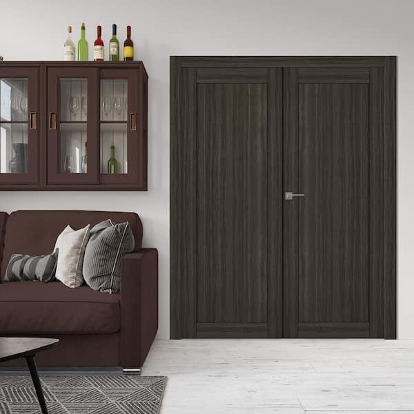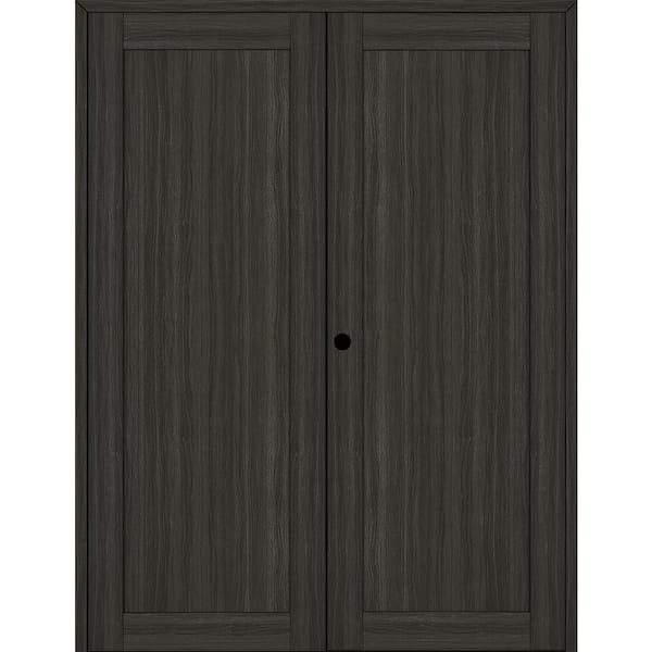 1 Panel Shaker 48 in. x 96 in. Right Active Gray Oak Wood Composite Double Prehung Interior Door