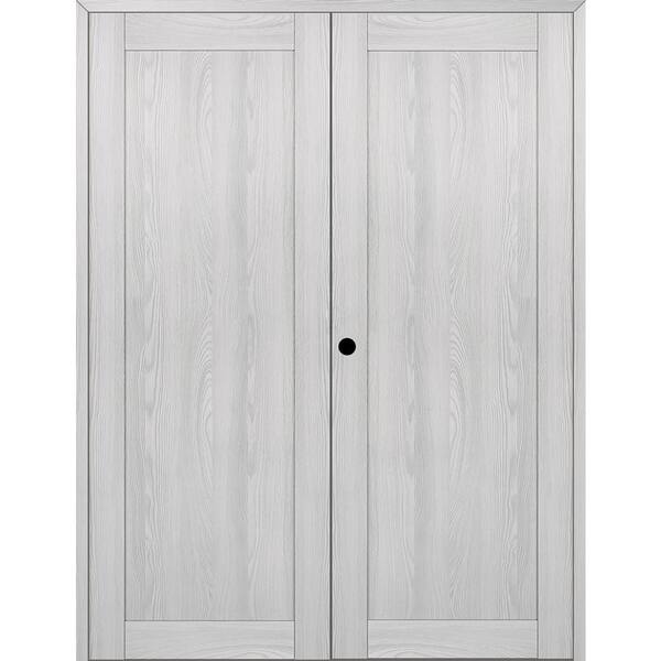 1-Panel Shaker 56 in. x 95.25 in. Right Active Ribeira Ash Wood Composite Double Prehung Interior Door
