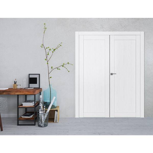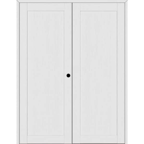 1 Panel Shaker 64 in. x 79.375 in. Left Active Bianco Noble Wood Composite Double Prehung Interior Door