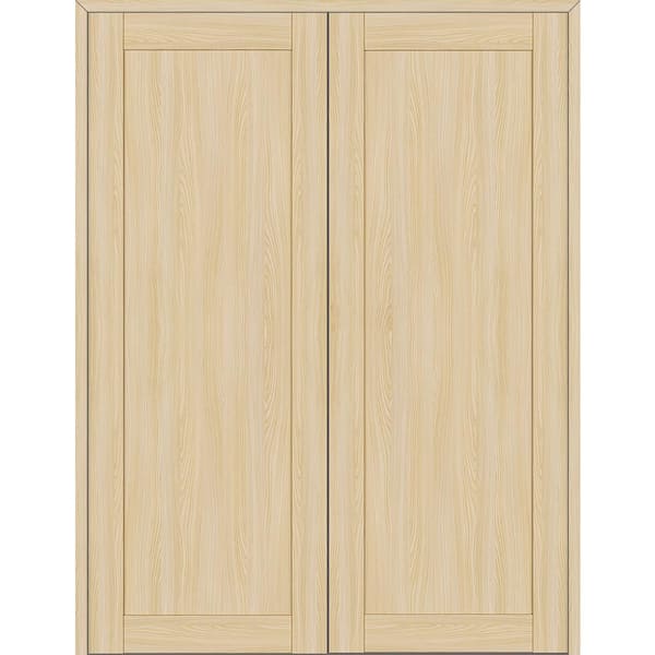 1 Panel Shaker 64 in. x 96 in. Both Active Loire Ash Wood Composite Double Prehung Interior Door