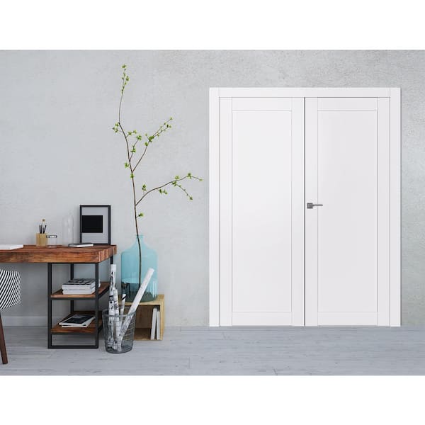 1 Panel Shaker 72 in. x 95.25 in. Both Active Snow White Wood Composite Double Prehung Interior Door