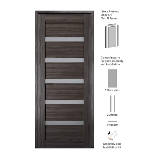 18 in. x 84 in. Leora Right-Hand Solid Core 6-Lite Frosted Glass Gray Oak Wood Composite Single Prehung Interior Door