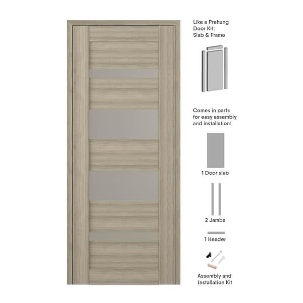 18 in. x 96 in. Mirella Left-Hand Solid Core 5-Lite Frosted Glass Shambor Wood Composite Single Prehung Interior Door