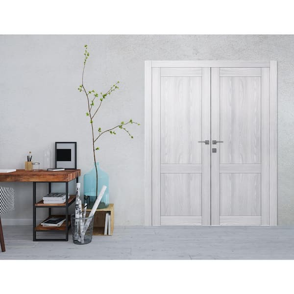 2-Panel Shaker 36 in. x 96 in. Left Active Ribeira Ash Wood Composite Solid Core Double Prehung Interior Door