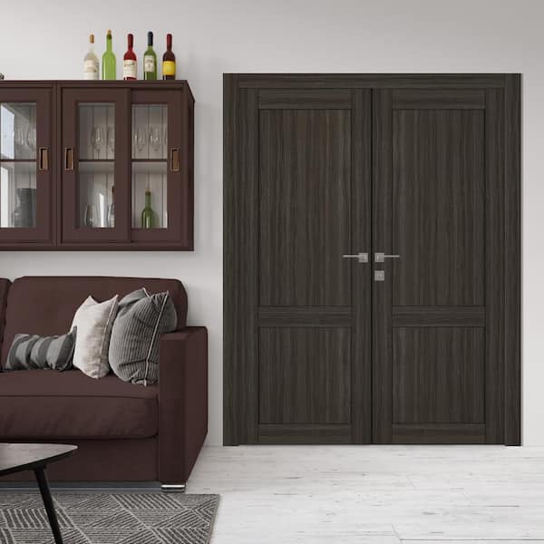 2-Panel Shaker 36 in. x 96 in. Right Active Gray Oak Wood Composite Solid Core Double Prehung Interior Door