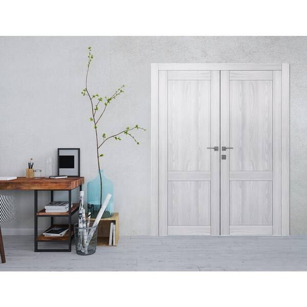 2 Panel Shaker 56 in. x 96 in. Both Active Ribeira Ash Wood Composite Solid Core Double Prehung Interior Door