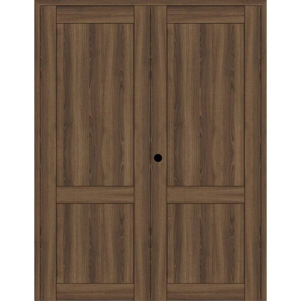 2-Panel Shaker 60 in. x 84 in. Right Active Pecan Nutwood Wood Composite Solid Core Double Prehung Interior Door