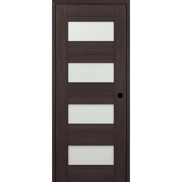 24 in. x 80 in. Vona 7/8 Left-Hand 4Lite Frosted Glass Veralinga Oak Composite DIY-Friendly Single Prehung Interior Door