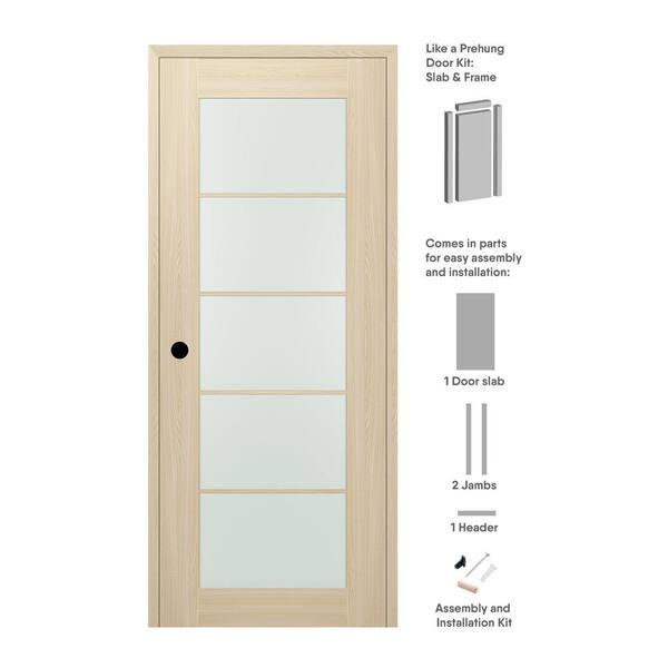 28 in. x 84 in. Vona Right-Hand Solid Composite Core 5-Lite Frosted Glass Loire Ash Wood Single Prehung Interior Door