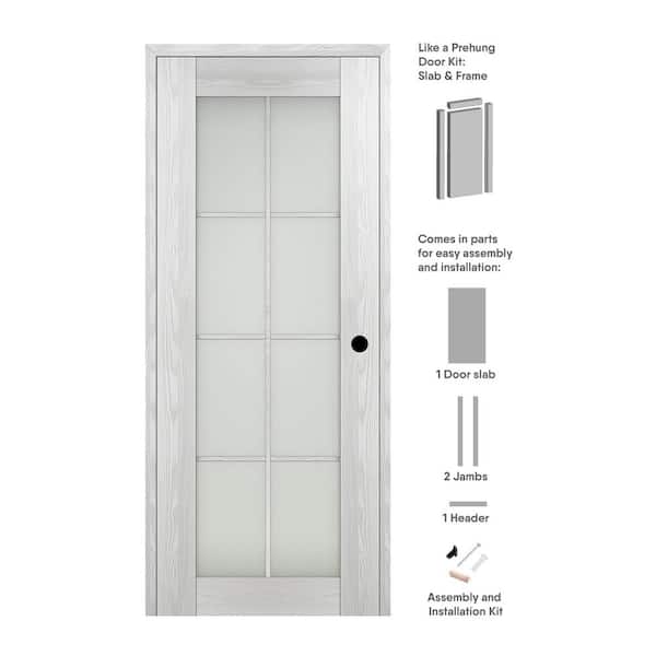 28 in. x 96 in. Vona Left-Hand 8-Lite Frosted Glass Ribeira Ash Wood Composite Single Prehung Interior Door