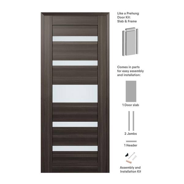 30 in. x 84 in. Gina Right-Hand Solid Core 5-Lite Frosted Glass Gray Oak Wood Composite Single Prehung Interior Door