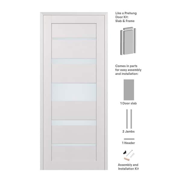 30 in. x 84 in. Kina Left-Hand Solid Core 5-Lite Frosted Glass Bianco Noble Wood Composite Single Prehung Interior Door