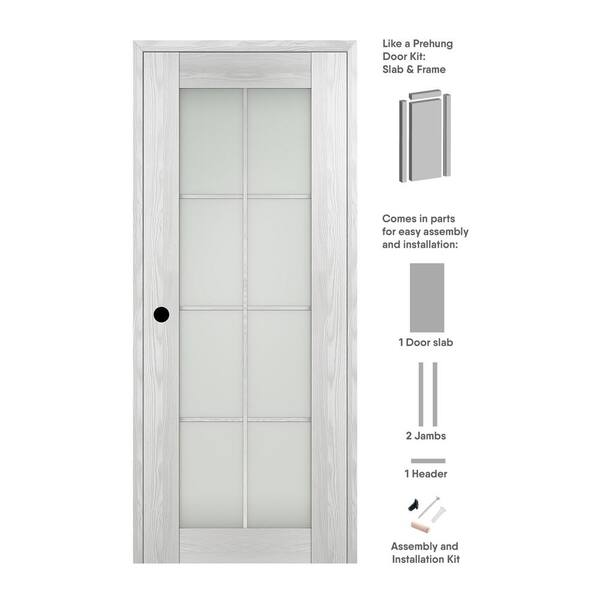 30 in. x 96 in. Vona Right-Hand 8-Lite Frosted Glass Ribeira Ash Wood Composite Single Prehung Interior Door