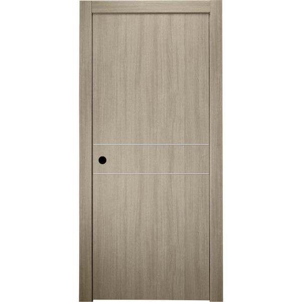 32 in. x 80 in. Viola 2HN Shambor Finished Aluminum Strips Right-Hand Solid Core Composite Single Prehung Interior Door
