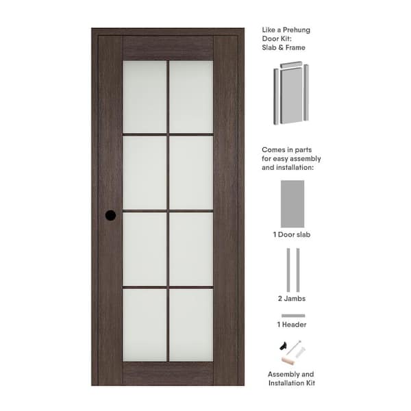 32 in. x 80 in. Vona Right-Hand 8-Lite Frosted Glass Veralinga Oak Wood Composite Single Prehung Interior Door