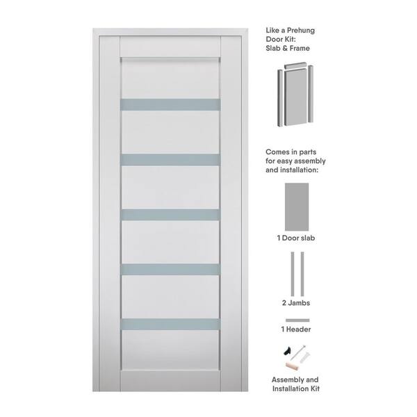 32 in. x 84 in. Gina Right-Hand Solid Core 5-Lite Frosted Glass Bianco Noble Wood Composite Single Prehung Interior Door