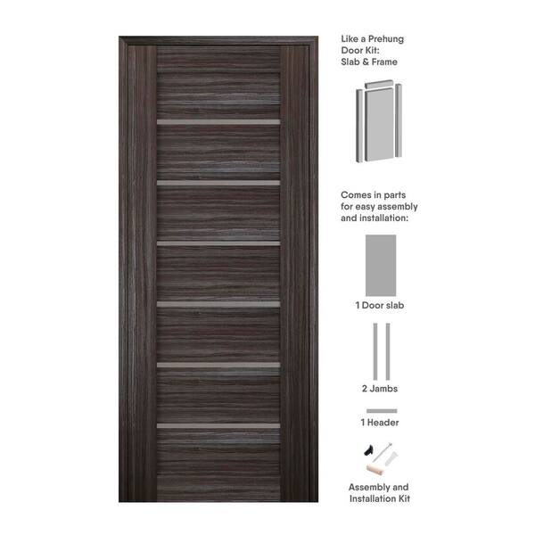 32 in. x 96 in. Alba Right-Hand Solid Core 7-Lite Frosted Glass Gray Oak Wood Composite Single Prehung Interior Door