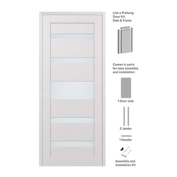 32 in. x 96 in. Gina Left-Hand Solid Core 7-Lite Frosted Glass Bianco Noble Wood Composite Single Prehung Interior Door