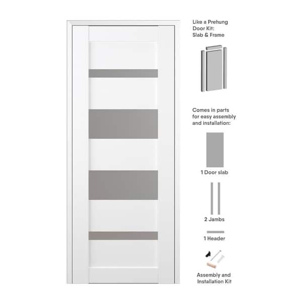 32" x 96" Mirella Right-Hand Solid Core 5-Lite Frosted Glass Bianco Noble Wood Composite Single Prehung Interior Door