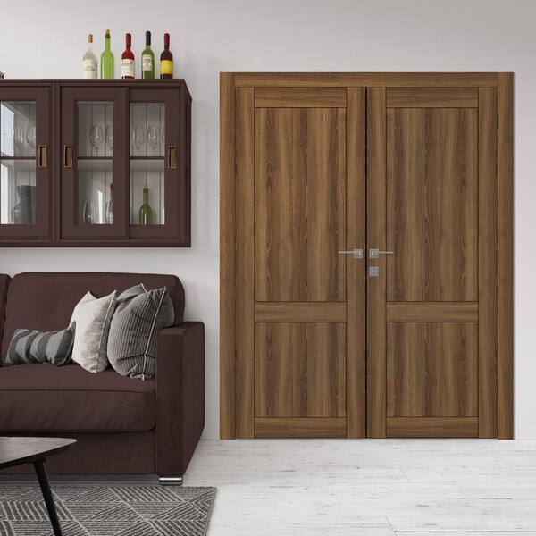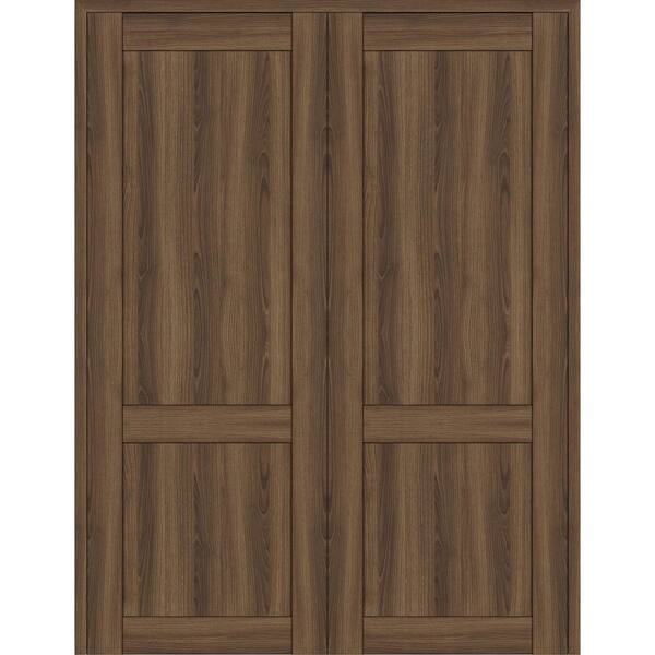 36 in. x 84 in. 2-Panel Shaker Both Active Pecan Nutwood Wood Composite Solid Core Double Prehung Interior Door