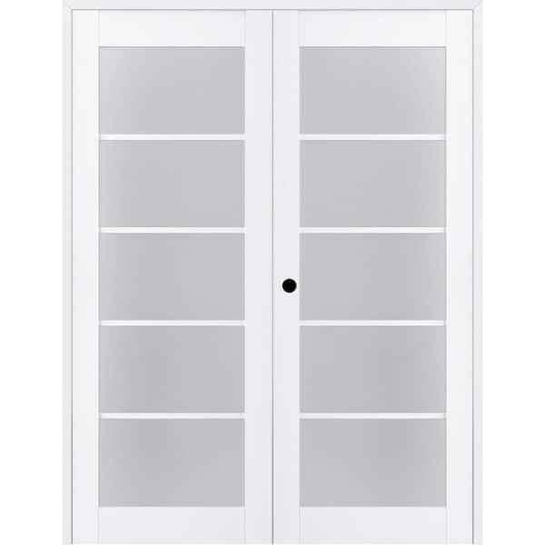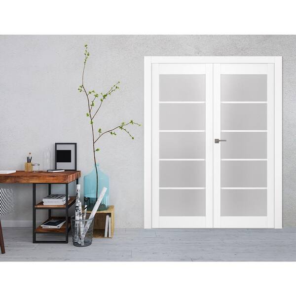 48 in. x 80 in. Right Hand Active 5-Lite Frosted Glass Bianco Noble Finished Wood Composite Double Prehung French Door