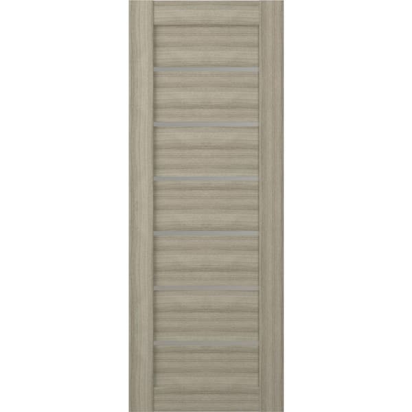 Alba 18 in. x 80 in. No Bore 6-Lite Solid Core Frosted Glass Shambor Finished Wood Composite Interior Door Slab