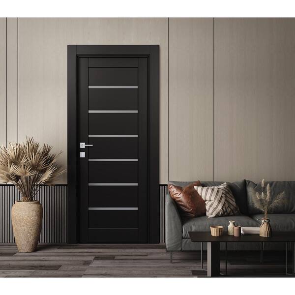 Alba 24 in. W. x 80 in. No Bore 6-Lite Frosted Glass Black Matte Solid Composite Core Wood Interior Door Slab