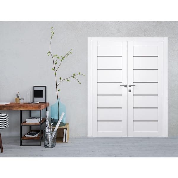 Alba 48 in. x 79,375 in. Both Active 6-Lite Frosted Glass Snow White Wood Composite Double Prehung Interior Door