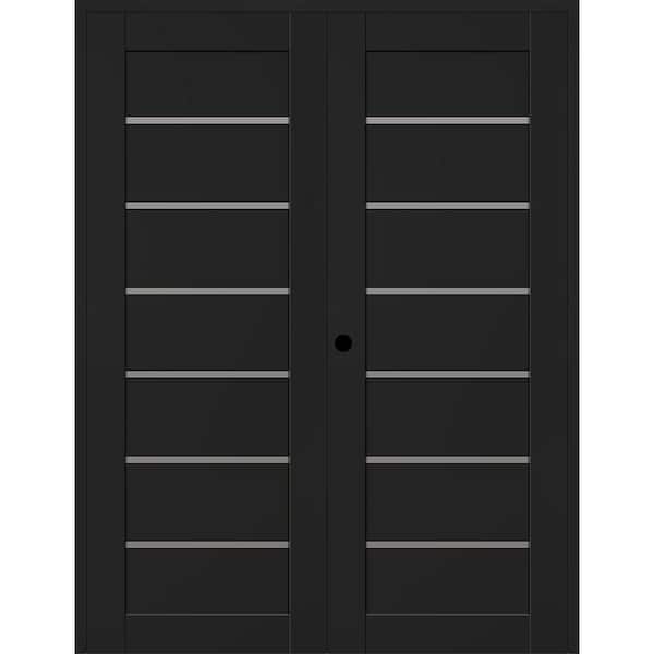 Alba 56 in. x 80 in. Right Active 6-Lite Frosted Glass Black Matte Composite Double Prehung Interior Door