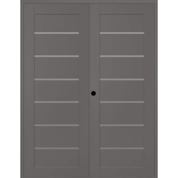 Alba 60 in. x 84 in. Right Active 7-Lite Frosted Glass Gray Matte Composite Double Prehung Interior Door