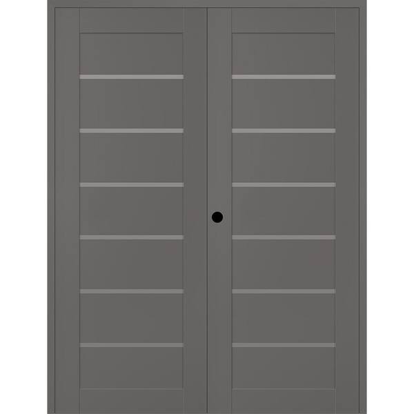 Alba 72 in. x 80 in. Right Active 6-Lite Frosted Glass Gray Matte Composite Double Prehung Interior Door