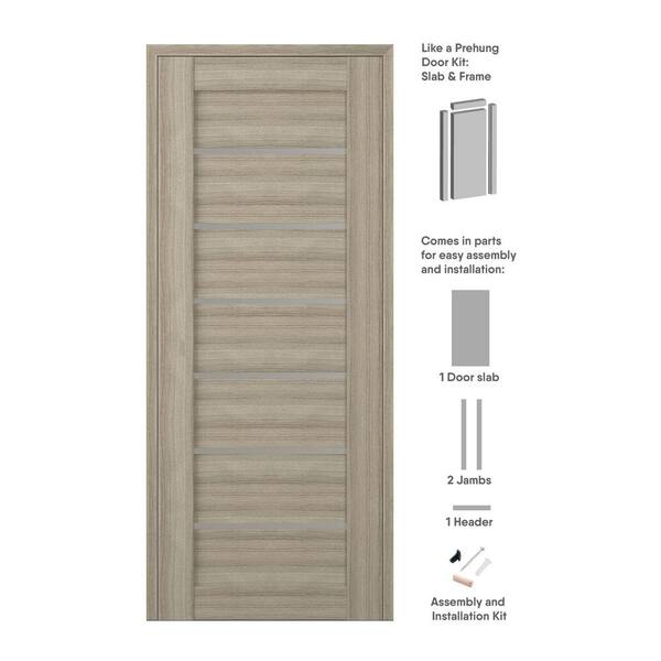 Alba DIY-Friendly 24 in. x 80 in. Left-Hand 6 Lite Frosted Glass Shambor Composite Wood Single Prehung Interior Door