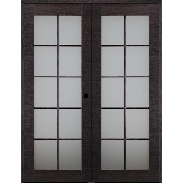 Avanti 10-Lite Frosted Glass 36 in. x 84 in. Left Hand Active Black Apricot Composite Wood Double Prehung French Door