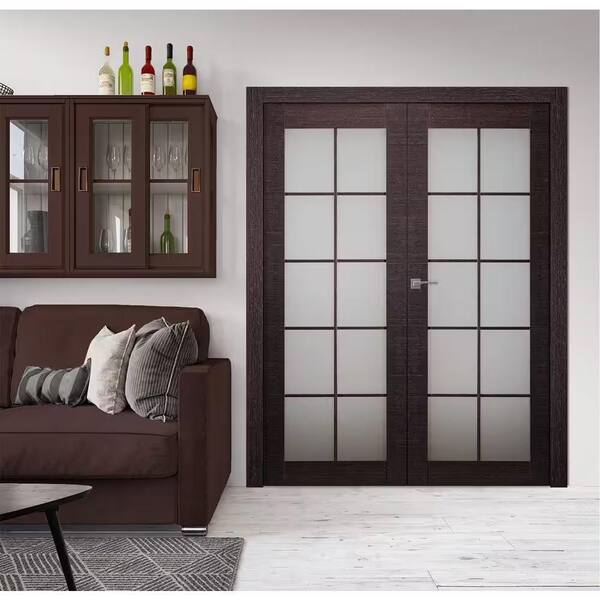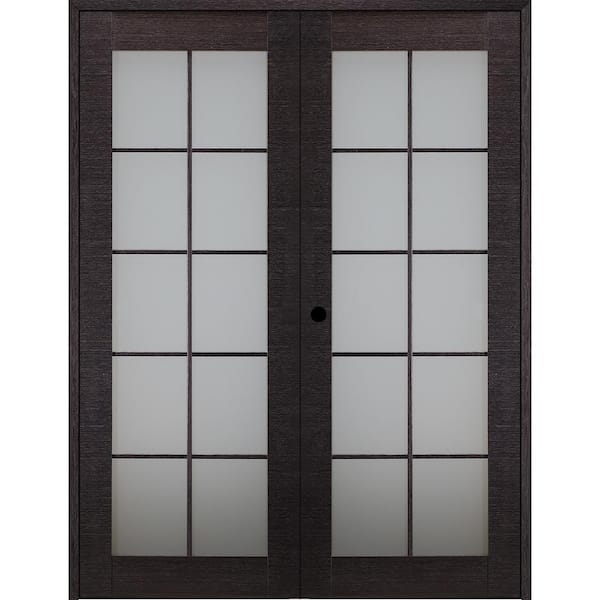 Avanti 10-Lite Frosted Glass 48 in. x 84 in. Right Hand Active Black Apricot Composite Wood Double Prehung French Door