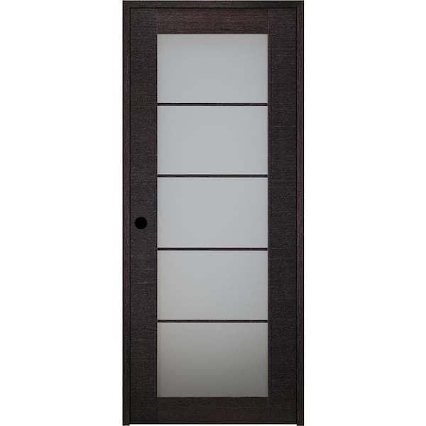 Avanti 5-Lite 18 in. x 84 in. Left-Hand Frosted Glass Solid Composite Black Apricot Wood Single Prehung Interior Door