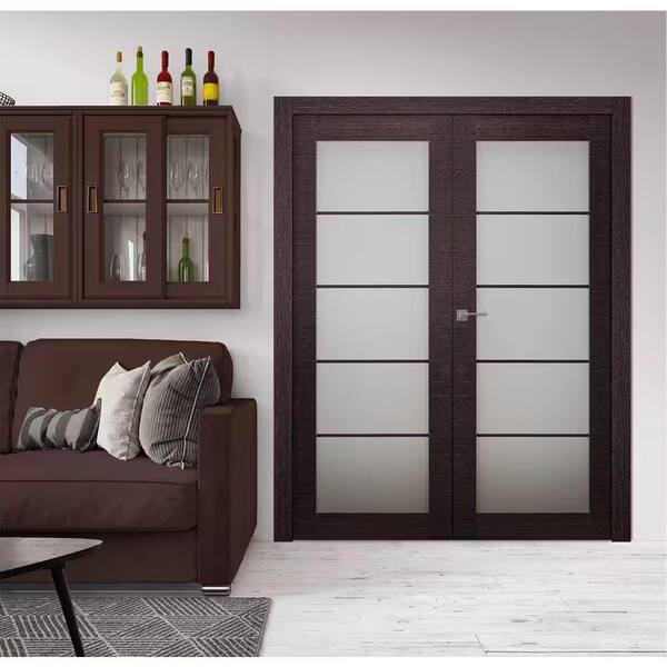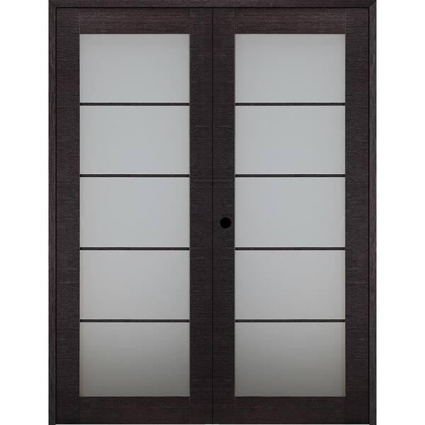 Avanti 5-Lite Frosted Glass 56 in. x 84 in. Right Hand Active Black Apricot Composite Wood Double Prehung French Door