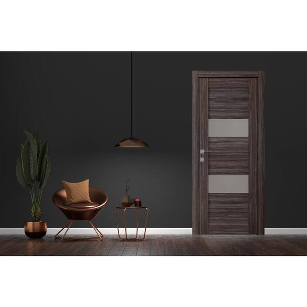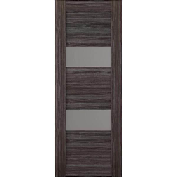Berta 36 in. x 80 in. No Bore Solid Core 2-Lite Frosted Glass Gray Oak Wood Composite Interior Door Slab
