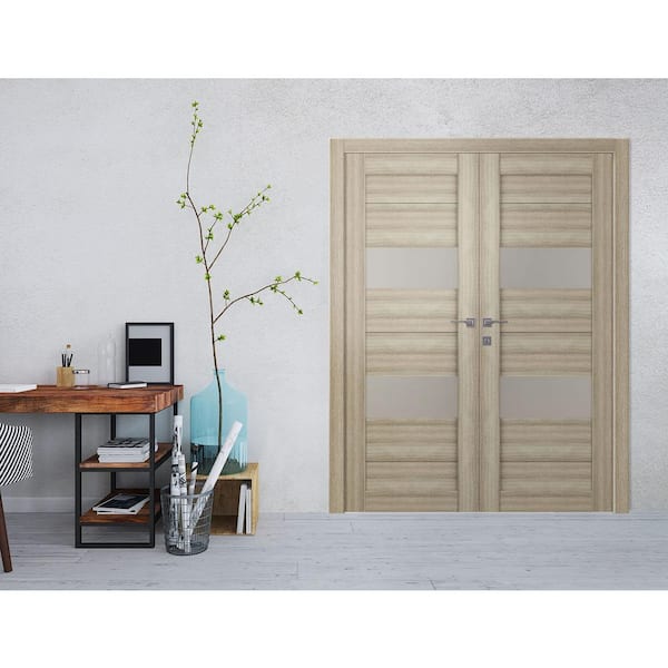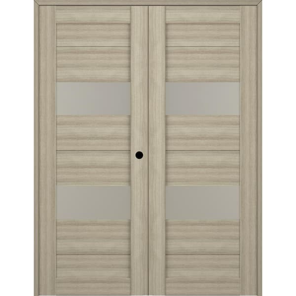 Berta 36 in. x 96 in. Left Hand Active 2-Lite Frosted Glass Shambor Wood Composite Double Prehung Interior Door