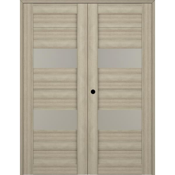 Berta 48 in. x 96 in. Right Hand Active 2-Lite Frosted Glass Shambor Wood Composite Double Prehung Interior Door