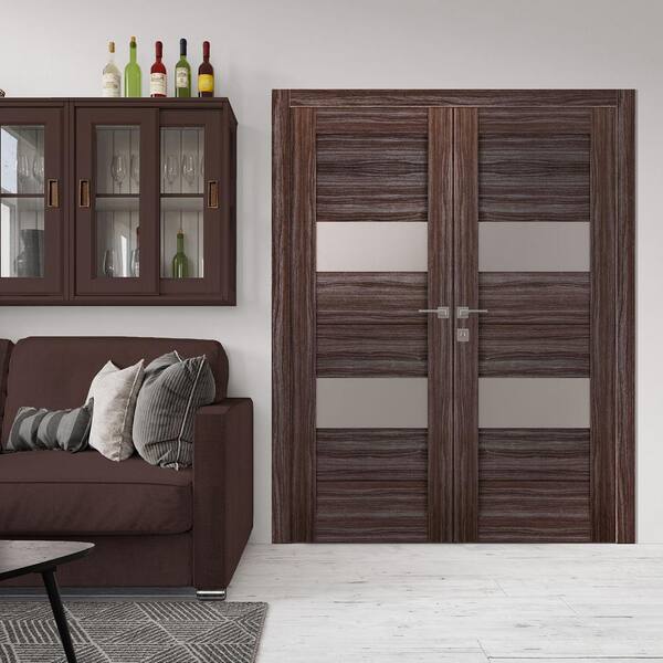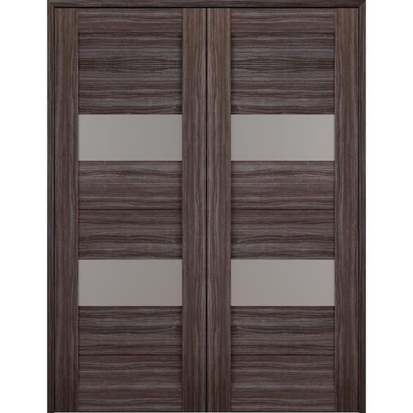 Berta 60 in. x 80 in. Both Active 2-Lite Frosted Glass Gray Oak Finished Wood Composite Double Prehung French Door