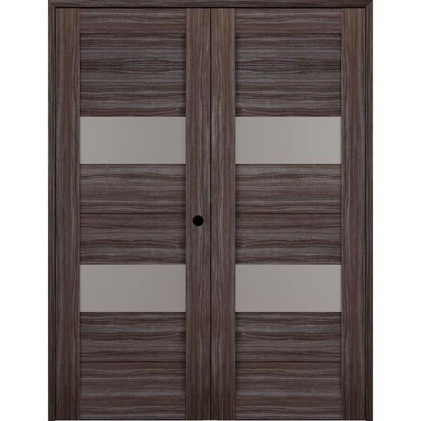 Berta 64 in. x 80 in. Left Hand Active 2-Lite Frosted Glass Gray Oak Wood Composite Double Prehung French Door