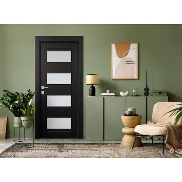 Della 32 in. W. x 96 in. No Bore 4-Lite Frosted Glass Black Matte Solid Composite Core Wood Interior Door Slab