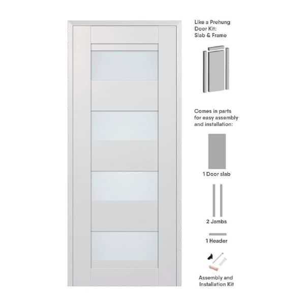Della 32 in. x 80 in. Left-Hand Frosted Glass Solid Core 4-Lite Bianco Noble Wood Composite Single Prehung Interior Door