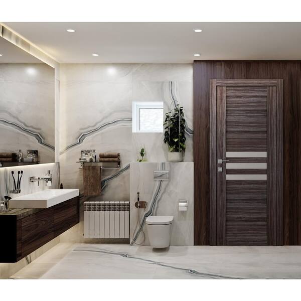 Dome 32 in. x 80 in. No Bore Solid Core 3-Lite Frosted Glass Gray Oak Wood Composite Interior Door Slab
