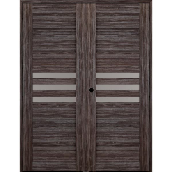 Dome 36 in. x 84 in. Right Hand Active Frosted Glass 3-Lite Gray Oak Wood Composite Double Prehung Interior Door