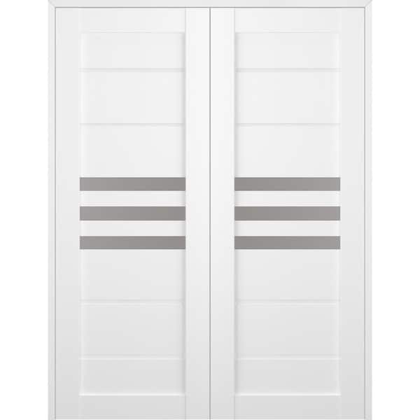Dome 56 in. x 80 in. Both Active 3-Lite Frosted Glass Bianco Noble Finished Wood Composite Double Prehung French Door