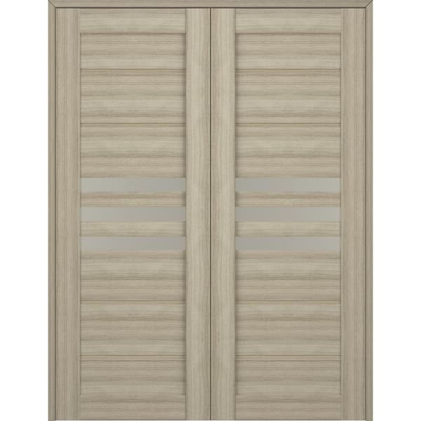 Dome 64 in. x 96 in. Solid Core Both Active 3-Lite Frosted Glass Shambor Wood Composite Double Prehung Interior Door