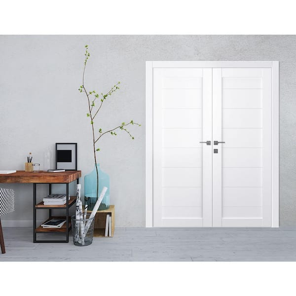 Ermi 48 in. x 96 in. Left Hand Active Bianco Noble Composite Wood Double Prehung Interior Door